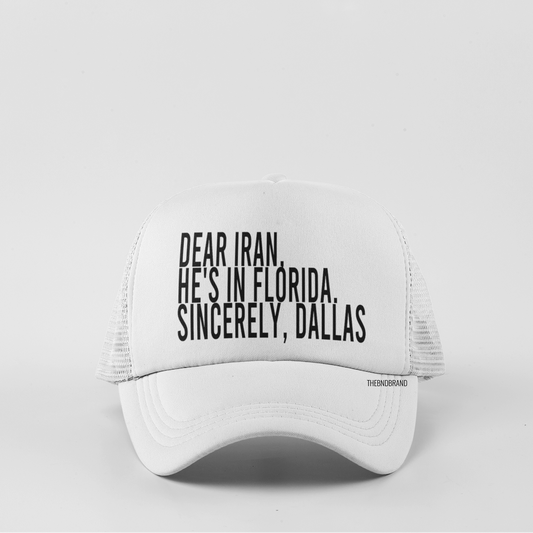 Dear Iran, He's in Florida — Sincerely, Dallas | Trucker Hat